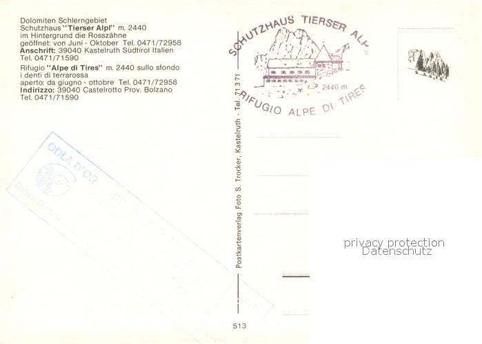 73687601 Kastelruth Suedtirol Schutzhaus Tierser Alpl mit Roterdspitze postalisch nicht gelaufen Erhaltung siehe scans [WerneD78] KatCode: 11390