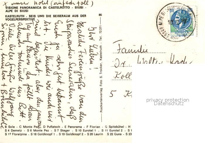 72943091 alte Postkarte Kastelruth Suedtirol Seis Seiseralm postalisch gelaufen Erhaltung siehe scans [KathaD81] KatCode: 11390