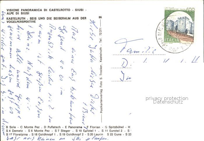 72240553 alte Postkarte Kastelruth Suedtirol Seis und Seiseralm Panoramakarte postalisch gelaufen Erhaltung siehe scans KatCode: 11390