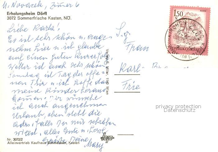 73235596 alte Postkarte Kasten Boeheimkirchen Erholungsheim Doerfl postalisch gelaufen Erhaltung siehe scans [WerneD78] KatCode: 11390123031917