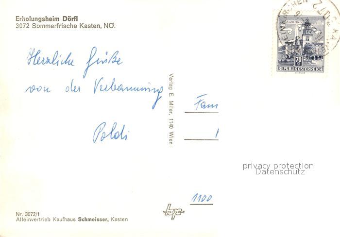73092824 alte Postkarte Kasten Boeheimkirchen Erholungsheim Doerfl postalisch gelaufen Erhaltung siehe scans [PaolaD17] KatCode: 11390123031917