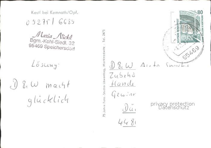 72310753 alte Postkarte Kastl Kemnath Stadtansicht postalisch gelaufen Erhaltung siehe scans KatCode: 11110009377128