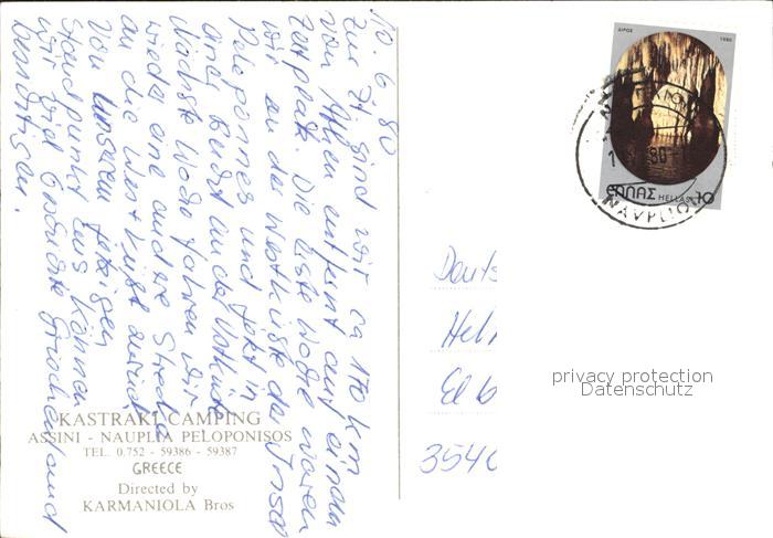 old postcard Kastraki Camping postalisch gelaufen Erhaltung siehe scans