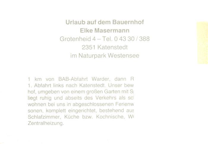 73922245 Katenstedt Emkendorf Bauernhof Elke Masermann postalisch nicht gelaufen Werbekarte (keine Postkarte) Erhaltung siehe scans [WerneD78] Werbekarte (keine Postkarte) Wern Katcode 11110001058049