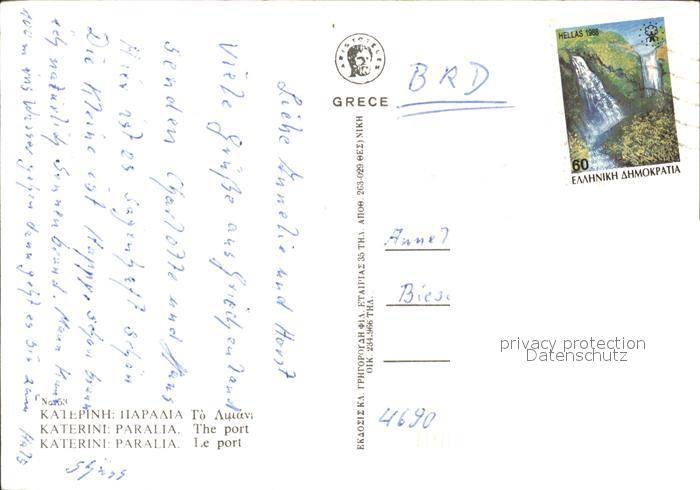 old postcard Katerini Paralia Hafen postalisch gelaufen