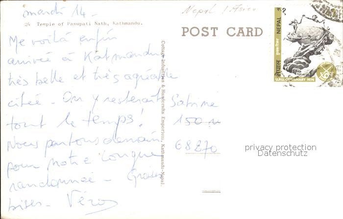 alte Postkarte Kathmandu Temple of Pasupati Nath postalisch gelaufen Erhaltung siehe scans