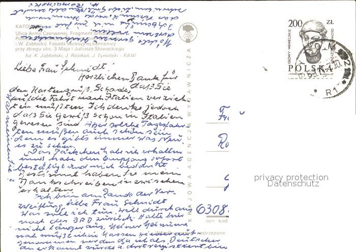 old postcard Katowice Armii Czerwonej Fragment Srodniescia Fasada secesyjnej kamienicy Maja i Juliusza Slowackiego postalisch gelaufen Erhaltung siehe scans