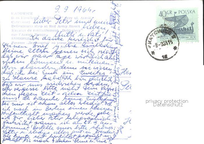 old postcard Katowice Dom Handlowy Delikatesy przy ul Armii postalisch gelaufen Erhaltung siehe scans
