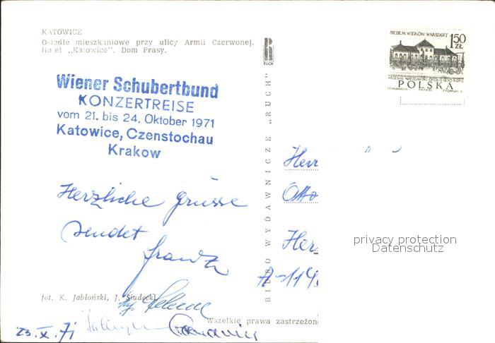 12019151 old postcard Katowice Hochhaeuser Dom Prasy postalisch gelaufen Erhaltung siehe scans KatCode: 11410