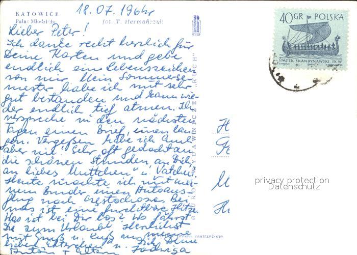 old postcard Katowice Palac Mlodziszy postalisch gelaufen Erhaltung siehe scans