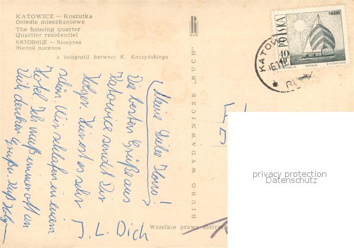 13339688 old postcard Katowice Quartier residentiel postalisch gelaufen Erhaltung siehe scans [WerneD78] KatCode: 11410