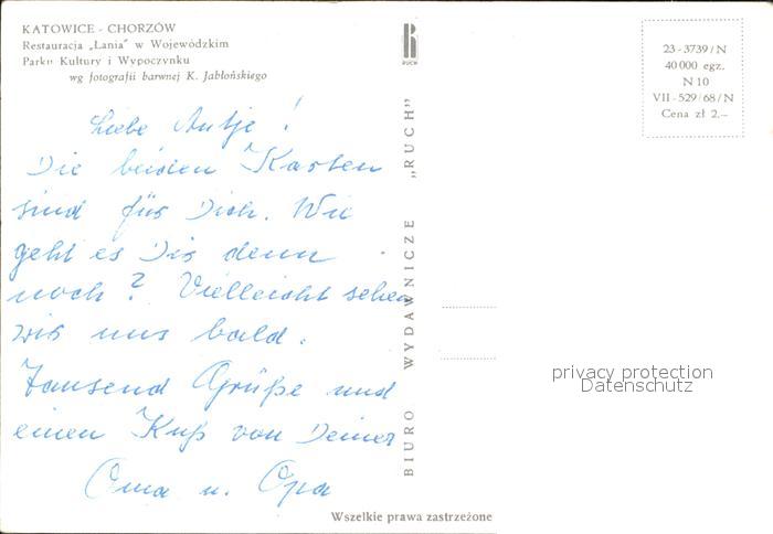 Katowice Restauracja Lania postalisch nicht gelaufen Erhaltung siehe scans