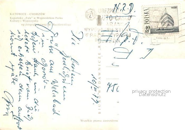 13330224 old postcard Katowice Schwimmbad postalisch gelaufen Erhaltung siehe scans [WerneD78] KatCode: 11410