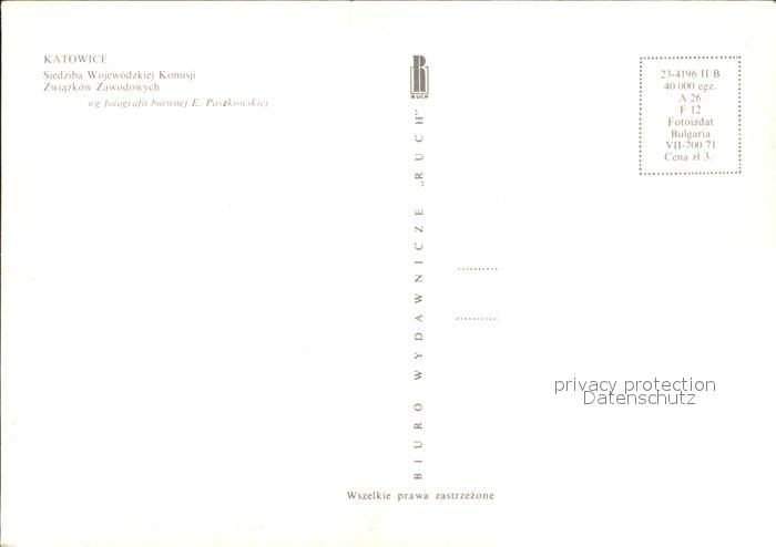 Katowice Siedziba Wojewodzkiej Komisji Zwiazkow Zawodowych postalisch nicht gelaufen Erhaltung siehe scans