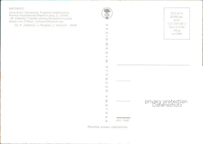 Katowice Ulica Armii Cherwonej Fragment srodmiescia Pomnik Powstancow Slaskich Fasada postalisch nicht gelaufen Erhaltung siehe scans