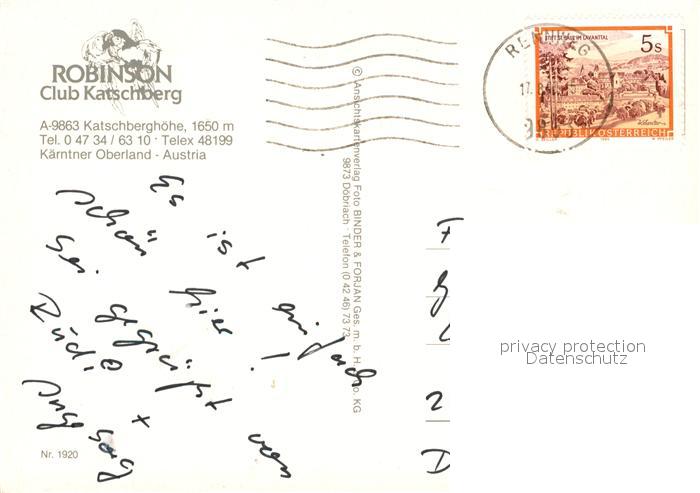 73267171 alte Postkarte Katschberghoehe Robinson Club Katschberg postalisch gelaufen Erhaltung siehe scans [KathaD81] KatCode: 11390212020632