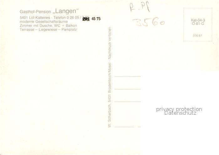 73087758 Kattenes Restaurant Gasthof Pension Langen postalisch nicht gelaufen Erhaltung siehe scans [KathaD81] KatCode: 11110007137214