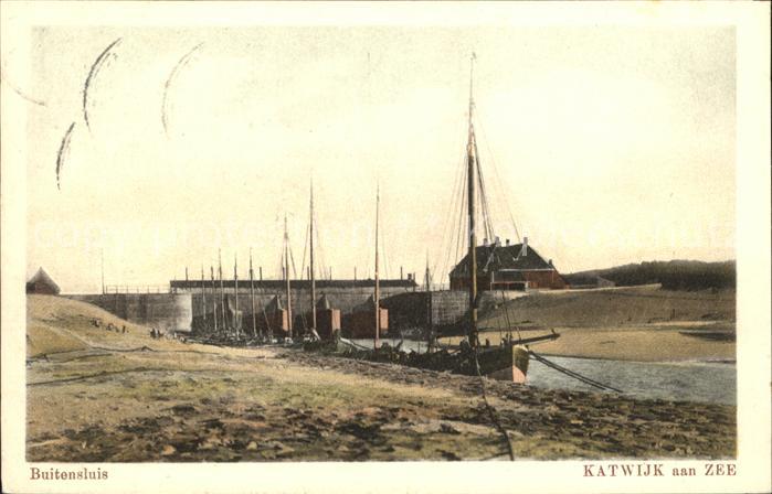 alte Postkarte Katwijk aan Zee Buitensluis Schleuse Segelboot postalisch gelaufen Erhaltung siehe scans