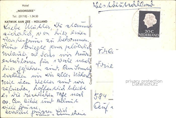 old postcard Katwijk aan Zee Hotel Noordzee postalisch gelaufen Erhaltung siehe scans