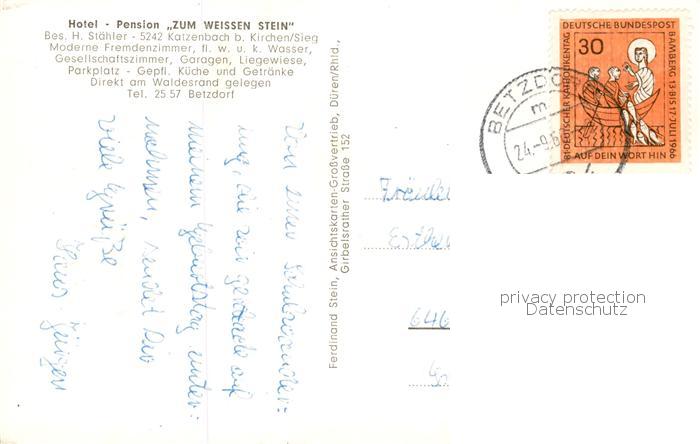 73830316 alte Postkarte Katzenbach Sieg Hotel Pension Zum weissen Stein Gaststube Panorama postalisch gelaufen Erhaltung siehe scans [FriedD77] KatCode: 11110007132063