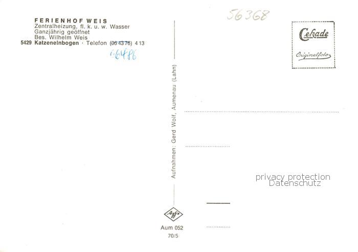 73854515 Katzenelnbogen Ferienhof Weis Gaststube Weiderinder postalisch nicht gelaufen Erhaltung siehe scans [WerneD78] KatCode: 11110007141068