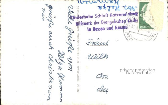 72446798 alte Postkarte Katzenelnbogen Kindererholungsheim Schloss postalisch gelaufen Erhaltung siehe scans KatCode: 11110007141068