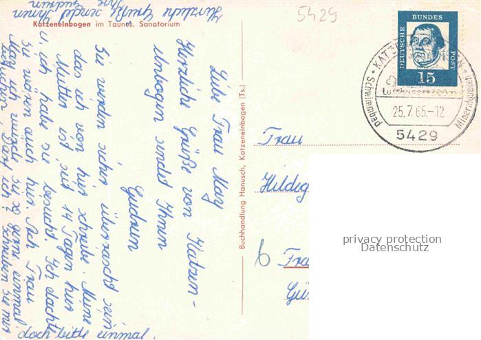 74040929 alte Postkarte Katzenelnbogen Sanatorium postalisch gelaufen Erhaltung siehe scans [WerneD78] KatCode: 11110007141068