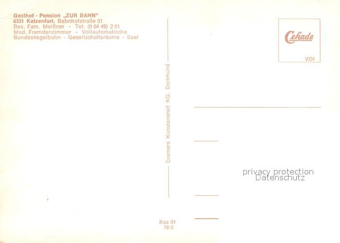 73646010 Katzenfurt Gasthof Pension Zur Bahn Restaurant postalisch nicht gelaufen Erhaltung siehe scans [FriedD77] KatCode: 11110006532008