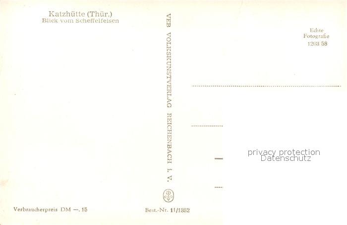 73044796 Katzhuette Blick vom Scheffelfelsen postalisch nicht gelaufen Erhaltung siehe scans [PaolaD17] KatCode: 11110016073037