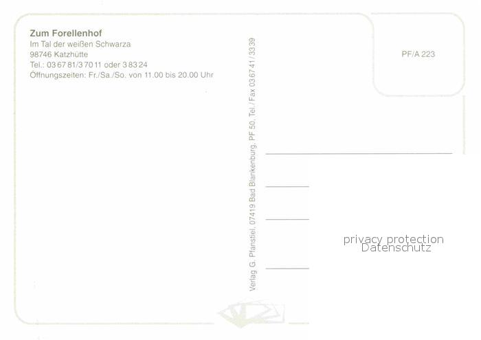 72844853 Katzhuette Forellenhof Restaurant postalisch nicht gelaufen Erhaltung siehe scans [LiesaD40] KatCode: 11110016073037