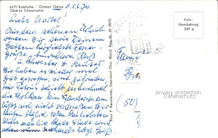 72185314 alte Postkarte Katzhuette Oelze Oberes Schwarzatal postalisch gelaufen Erhaltung siehe scans KatCode: 11110016073037