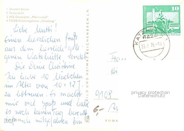 72633161 alte Postkarte Katzhuette OT Oelze Teilansicht HO Gaststaette Martinshof FDGB Erholungsheim Erholung postalisch gelaufen Erhaltung siehe scans [FriedD77] KatCode: 11110016073037