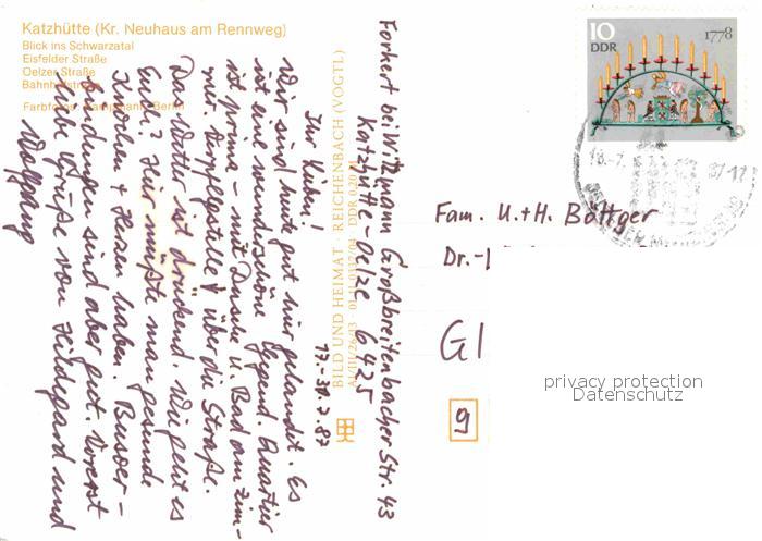 72627730 alte Postkarte Katzhuette Schwarzatal Eisfelder Str Oelzer Str Bahnhofstr postalisch gelaufen Erhaltung siehe scans [WerneD78] KatCode: 11110016073037