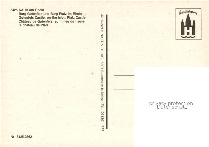 73249238 Kaub Burg Gutenfels Burg Pfalz im Rhein Landschaftspanorama Weinberge postalisch nicht gelaufen Erhaltung siehe scans [FriedD77] KatCode: 11110007141069