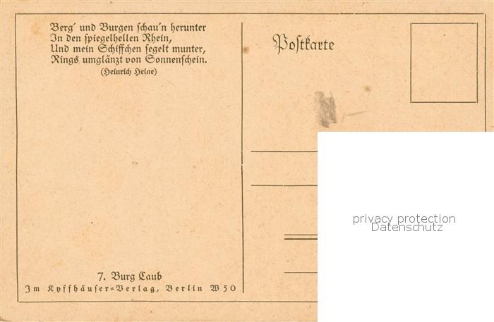 73817144 Kaub Caub Rhein Burg Kaub postalisch nicht gelaufen Erhaltung siehe scans [WerneD78] Wern Katcode 11110007141069