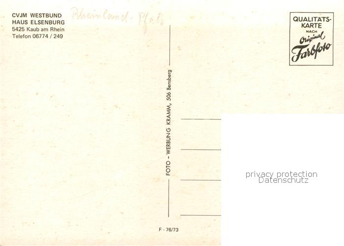 73226065 Kaub CVJM Westbund Haus Elsenburg postalisch nicht gelaufen Erhaltung siehe scans [LiesaD40] KatCode: 11110007141069