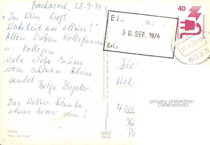 72664081 alte Postkarte Kaub Die Pfalz postalisch gelaufen Erhaltung siehe scans [WerneD78] KatCode: 11110007141069