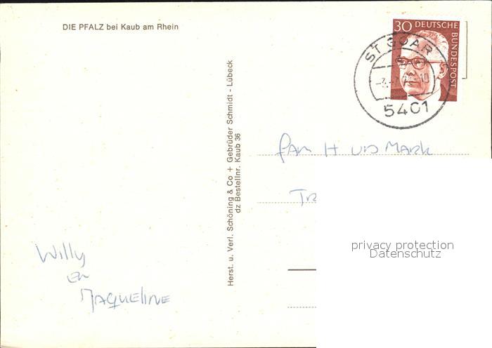 alte Postkarte Kaub Die Pfalz am Rhein postalisch gelaufen Erhaltung siehe scans