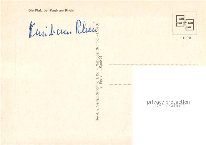 72992313 Kaub Die Pfalz im Rhein postalisch nicht gelaufen Erhaltung siehe scans [WerneD78] KatCode: 11110007141069