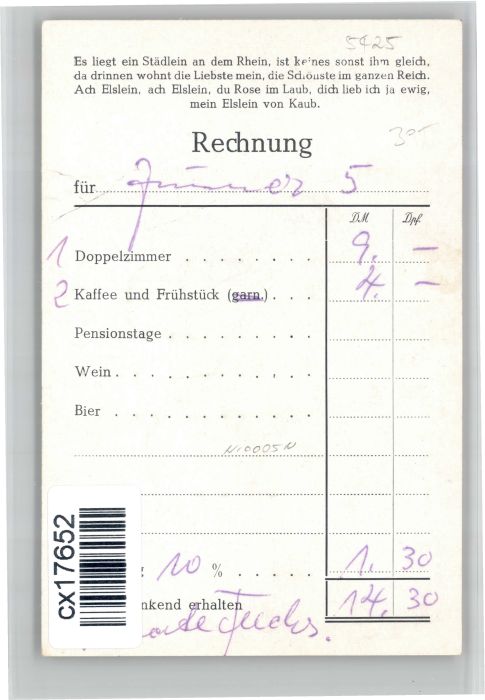 30725423 Kaub Elsleinschaenke Goldner Stern postalisch nicht gelaufen KatCode: 11110007141069