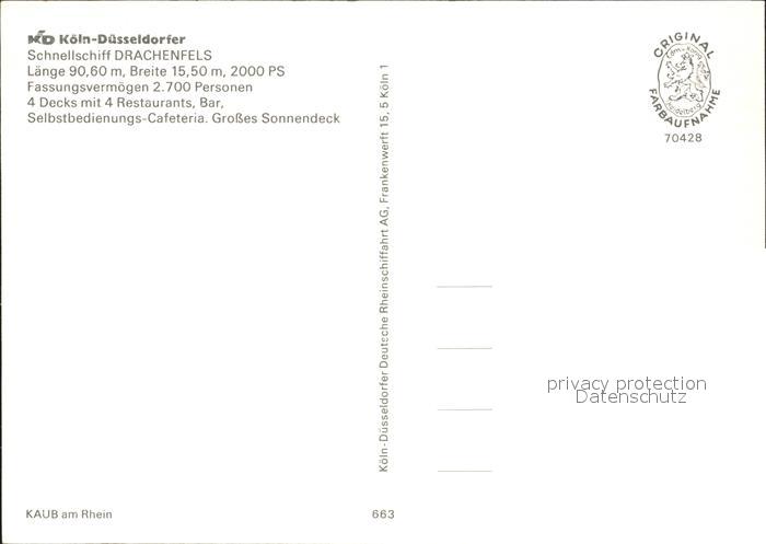 72401184 Kaub Schnellschiff Drachenfels Burg postalisch nicht gelaufen Erhaltung siehe scans KatCode: 11110007141069