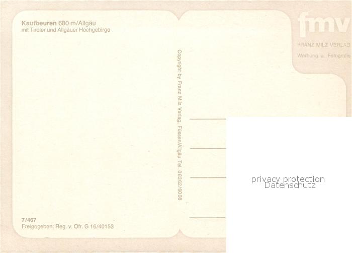 73613440 Kaufbeuren Fliegeraufnahme mit Alpen postalisch nicht gelaufen Erhaltung siehe scans [LiesaD40] KatCode: 11110009762000