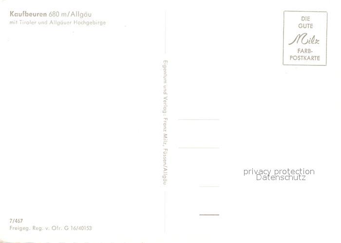 73163417 Kaufbeuren Fliegeraufnahme mit Tiroler und Allgaeuer Hochgebirge postalisch nicht gelaufen Erhaltung siehe scans [WerneD78] KatCode: 11110009762000