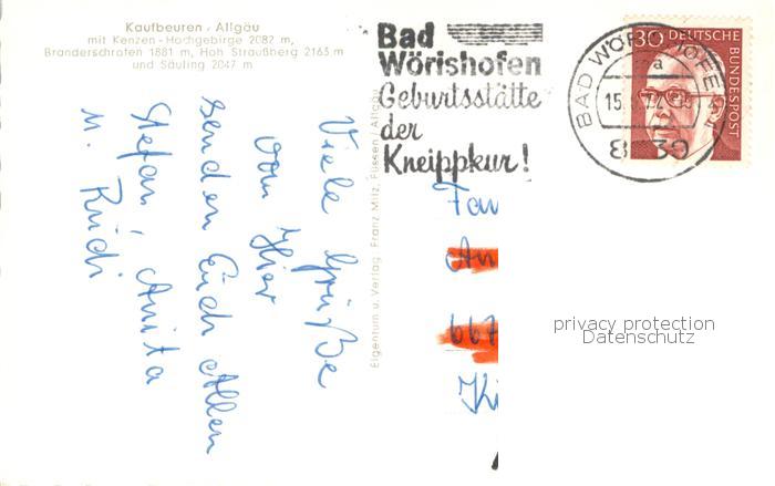 73768314 alte Postkarte Kaufbeuren Gesamtansicht m. Berg-Panorama postalisch gelaufen Erhaltung siehe scans [LiesaD40] KatCode: 11110009762000