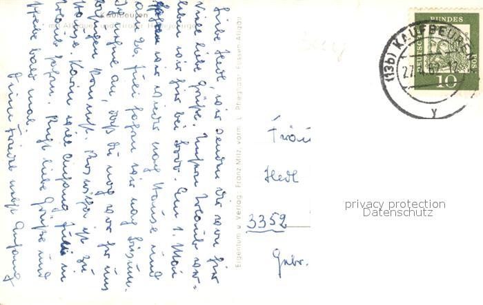 43018691 alte Postkarte Kaufbeuren Gesamtansicht mit Alpenpanorama postalisch gelaufen Erhaltung siehe scans [FriedD77] KatCode: 11110009762000