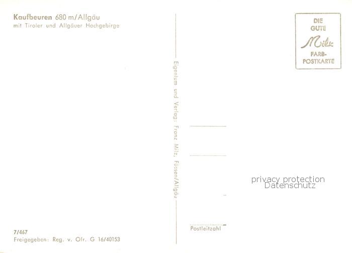 73812844 Kaufbeuren mit Tiroler und Allgaeuer Hochgebirge Fliegeraufnahme postalisch nicht gelaufen Erhaltung siehe scans [WerneD78] KatCode: 11110009762000