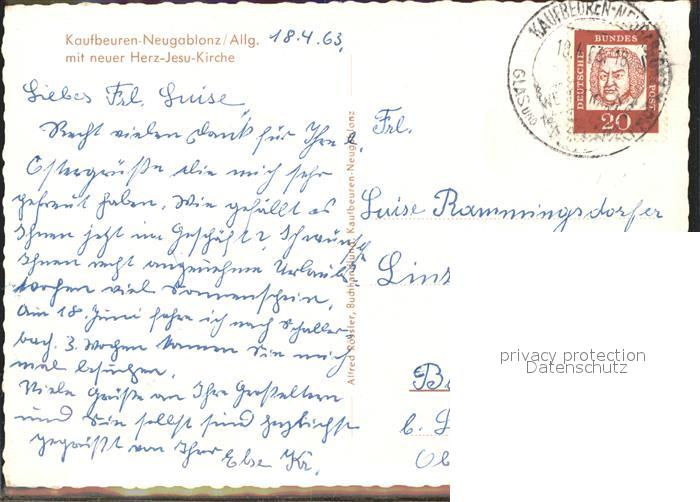71907092 alte Postkarte Kaufbeuren Neugablanz mit Herz Jesu Kirche Fliegeraufnahme postalisch gelaufen Erhaltung siehe scans KatCode: 11110009762000