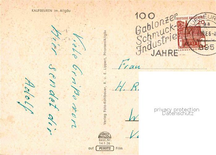 72796298 alte Postkarte Kaufbeuren Sebenspitze Aggenstein Rossberg Brentenjoch postalisch gelaufen Erhaltung siehe scans [NatalD47] KatCode: 11110009762000
