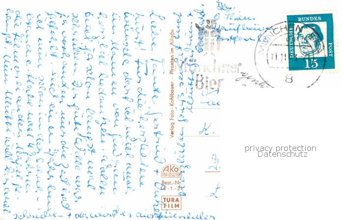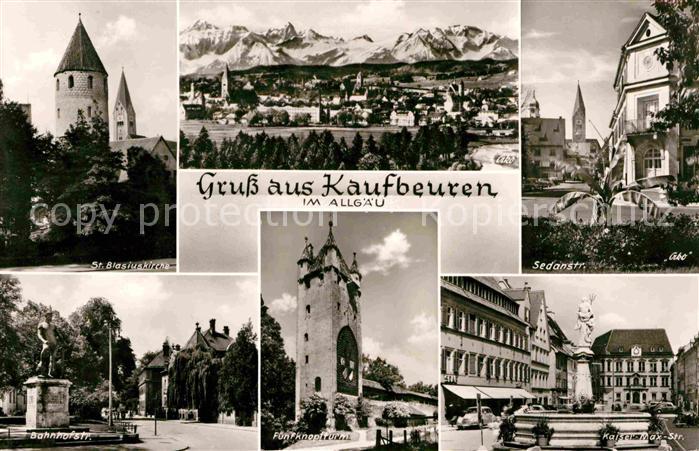 72633466 alte Postkarte Kaufbeuren St Blasiuskirche Alpenkette Sedanstrasse Kaiser Max Strasse Brunnen Fuenfknopfturm Bahnhofstrasse Denkmal Statue postalisch gelaufen Erhaltung siehe scans [FriedD77] KatCode: 11110009762000