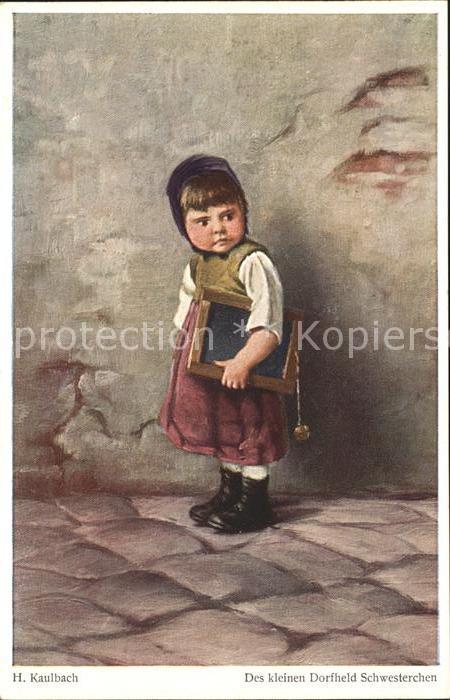 11740544 Kaulbach Hermann Des kleinen Dorfheld Schwesterchen Nr. 745 Schultafel Kind KatCode 22240000002900